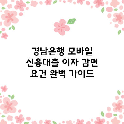 경남은행 모바일 신용대출 이자 감면 요건 완벽 가이드